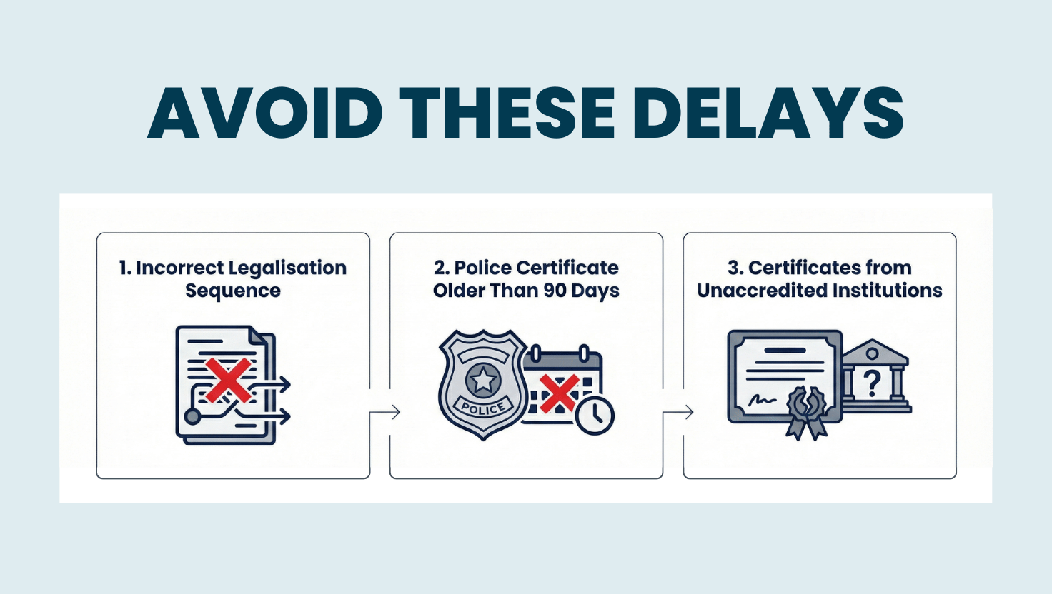 Getting the legalisation sequence wrong: The correct sequence is notarisaton or solicitor certification, followed by an FCDO apostille, followed by UAE embassy attestation. Skipping any step will occasion a rejection, leading to delays.gov.uk/get-document-legalised
